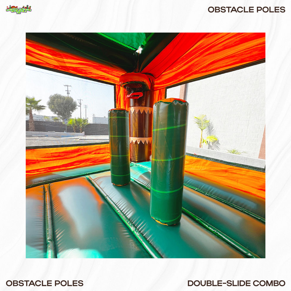 Elevate the fun at your next event with our Double Slide Combo Inflatable! This multi-activity play structure is perfect for birthday parties, community events, and more. Combining a bounce house, obstacle poles, basketball hoop and a thrilling double slide, the Double-Slide Combo Inflatable offers endless entertainment and excitement for children.