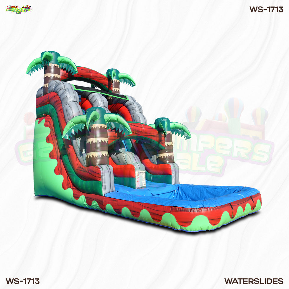 Eye-Catching Design: The inflatable waterslide features bright colors and engaging themes such as tropical islands, ocean waves, and jungle adventures that captivate and excite participants.